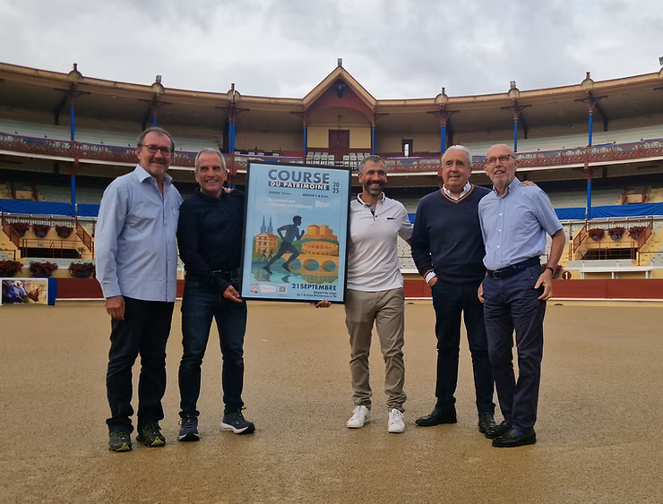 Une présentation officielle de la Course du Patrimoine à la presse avait lieu ce matin [jeudi 28 août], aux Arènes de Bayonne que l’épreuve traversera, en présence de Cyrille Laiguillon et Yves Ugalde respectivement adjoints aux sports et à la culture de la Ville de Bayonne.